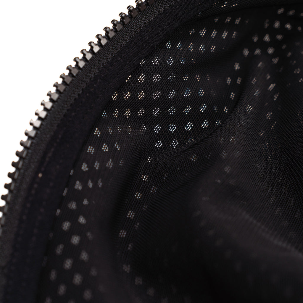 - 2 laser-cut zipped side pockets with visor wipe, and 1 laser-cut zipped large back pocket