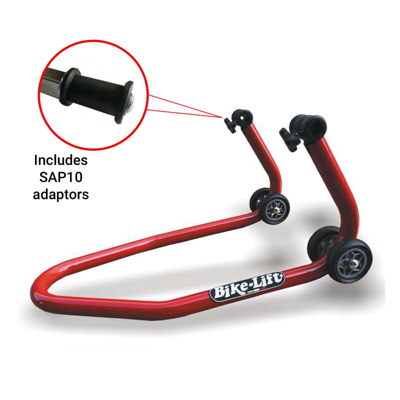 FS-10  Universal front adjustable stand. Fits under forks using sliding adaptors. 33 cm high. Available with your choice of the following adaptors: