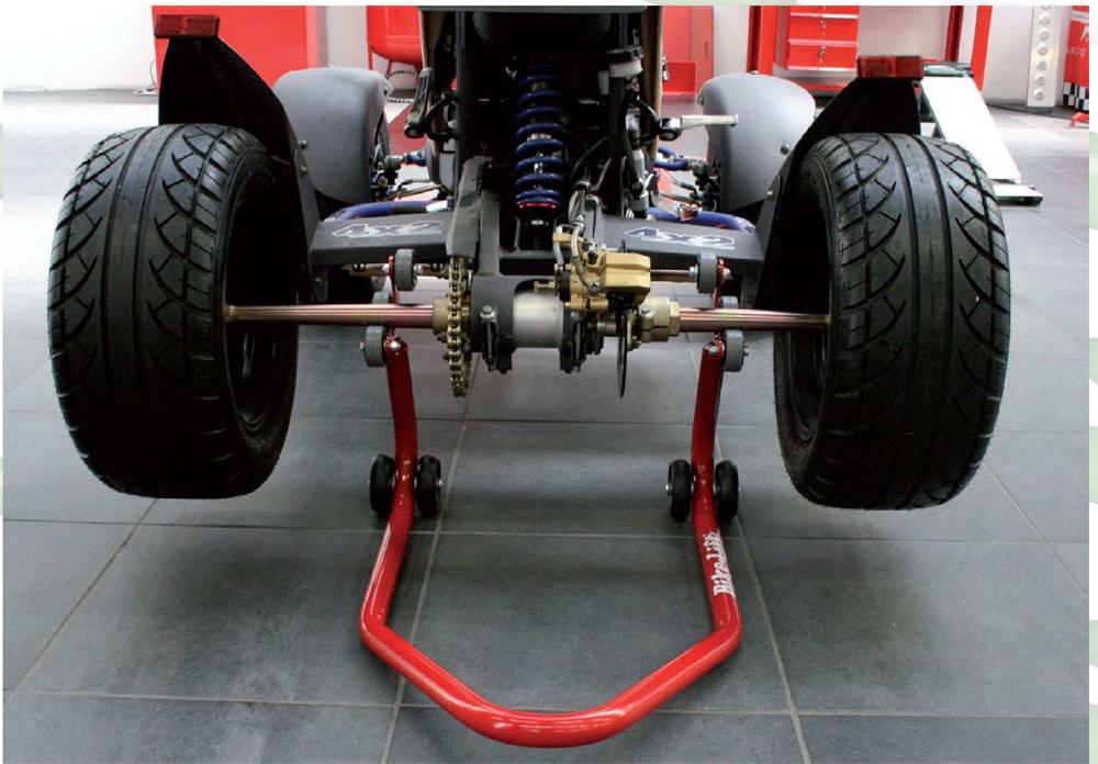 The RS-Q has been developed for the rear lift of quads or ATVs with roller supports for an easy and comfortable fitting on the rear wheel axle.
