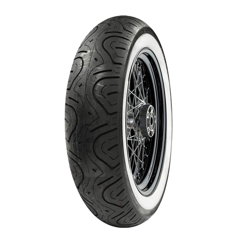 Classic custom whitewall motorcycle tyre for cruisers, Harleys and heavy touring bikes.