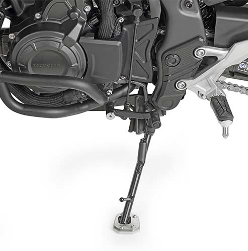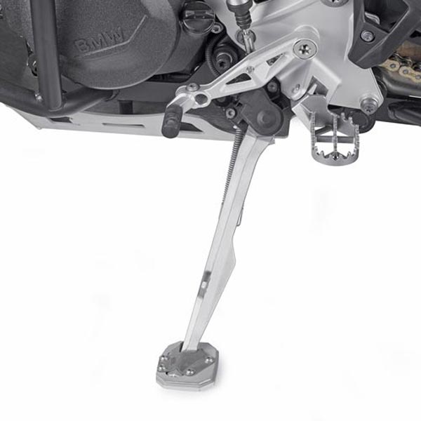 Givi have a new range of side stand supports made from aluminum and stainless steel that widen the surface support area of the original side stand. They are easy to fit and are available for the popular adventure and touring bikes.