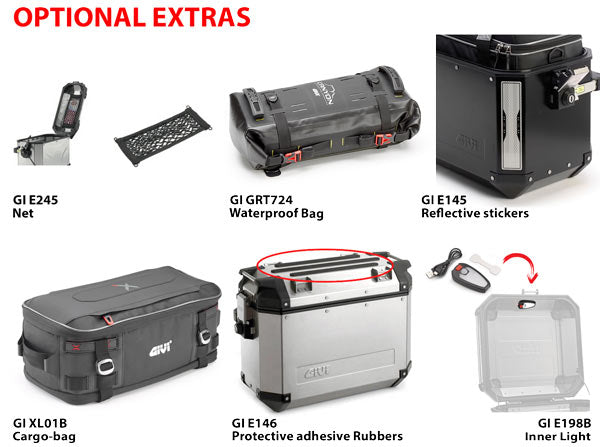 Note: the pannier racks required to fit these panniers (PL__CAM) are bike-specific, so we recommend checking www.givi.it first to see what fitments are available for your bike.