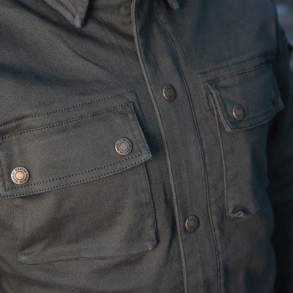 The Brody allows you to ride in style without compromising on safety. Designed to look like a classic utility shirt, Brody is constructed using a single layer stretch cotton twill, achieving CE Level ‘AA’ overall, backed up by D3O’s flexible Ghost armour pre-fitted to the shoulders and elbows. Brody is finished with durable YKK zippers and Merlin-branded brass snap studs to complete the look.