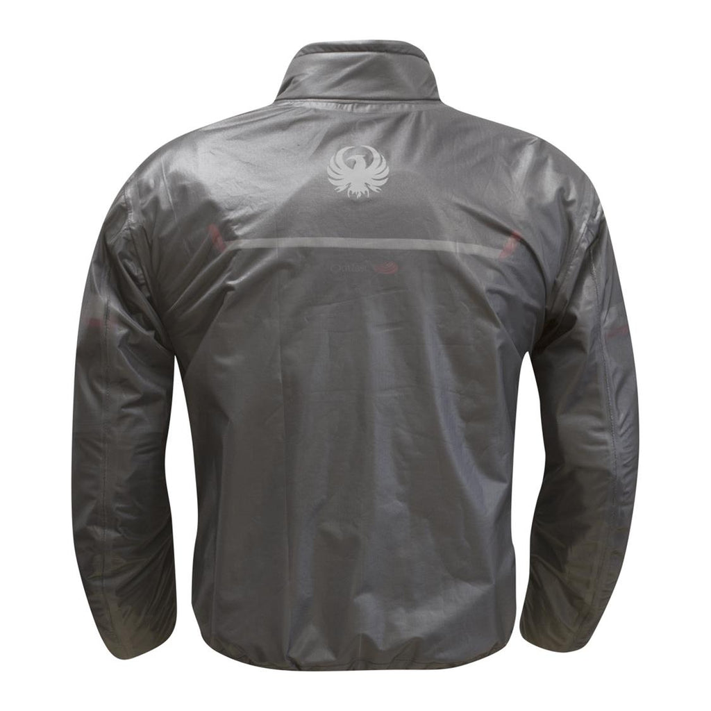 Handy semi-transparent rain jacket by Merlin, featuring a logo on the upper back. Comes with a bag for easy storage.