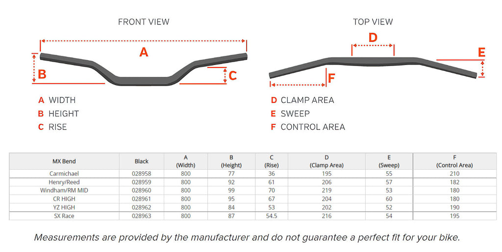 - 1 1/8" (28.6mm) tubing at the clamping area