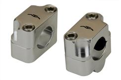 5319.91 - Handlebar riser/adapter clamps Ø22 mm - 28 mm conversion. 20 mm rise. M8 bolts for 33 mm - 35 mm original clamp hole centre spacing. Silver.
